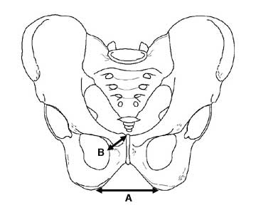 - The pelvis of the female is wider. Males have a narrow subpubic angle (A)